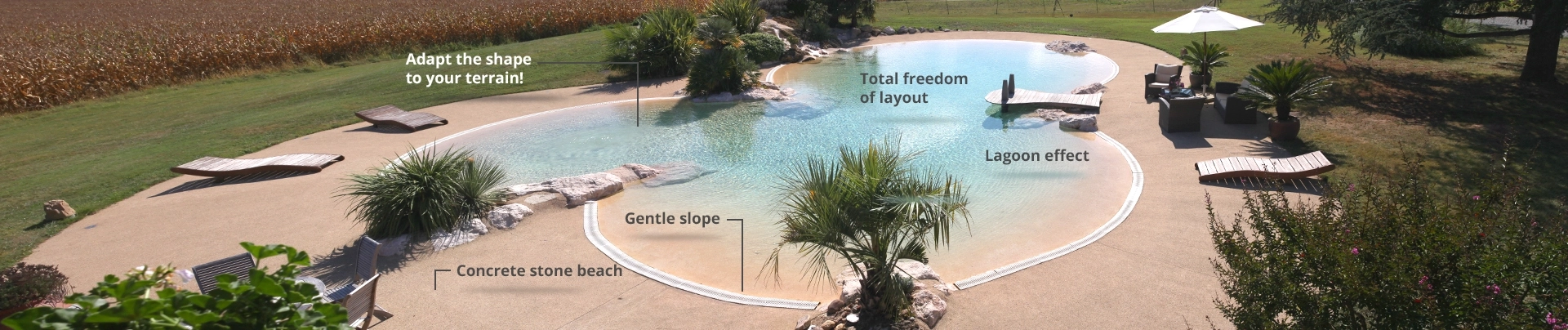 Thanks to the simplicity of the implementation of our concrete stone finish, NaturaDream offers you a custom lagoon pool for less than the price of a conventional pool: your dream becomes reality!